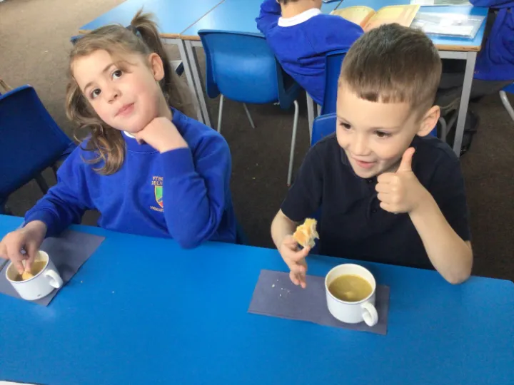 Y2, you are the best soup makers in the world! For our DT learning this week, you made your very own vegetable soup. I was so impressed with how brilliant you were at chopping all of the different vegetables and putting all of the ingredients together. We loved hearing the soup maker blend and smooth our soup as we thought about what it might look like. Then we got to the best part where we tasted our soup. I was so amazed with how you all gave it a go! Finally, we had to evaluate our soup and think about what we liked and what we might change next time.